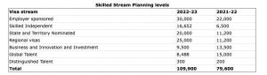 ویزای جریان مهارت که 70 درصد از برنامه مهاجرت را به خود اختصاص داده است در مجموع به 109،900 نفر اختصاص می یابد. این نشان دهنده افزایش تقریباً 30000 نفری نسبت به برنامه 2021-22 است.